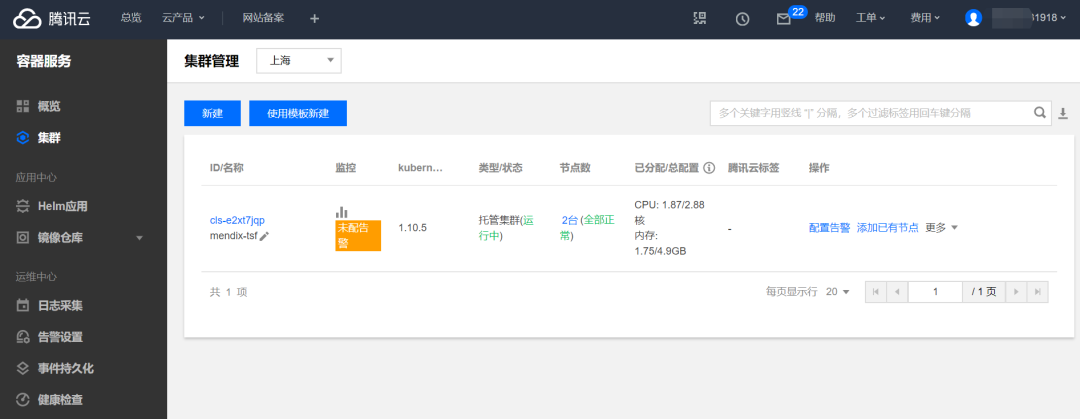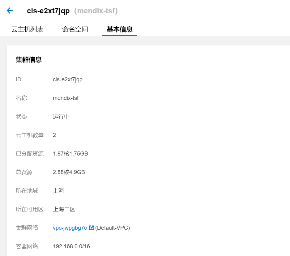 可以看到刚才在微服务平台创建好的集群点击集群id:
