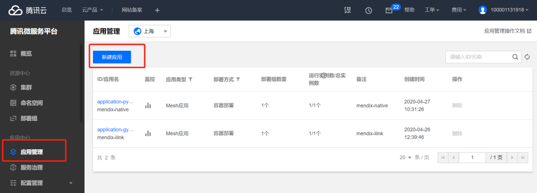 新建应用