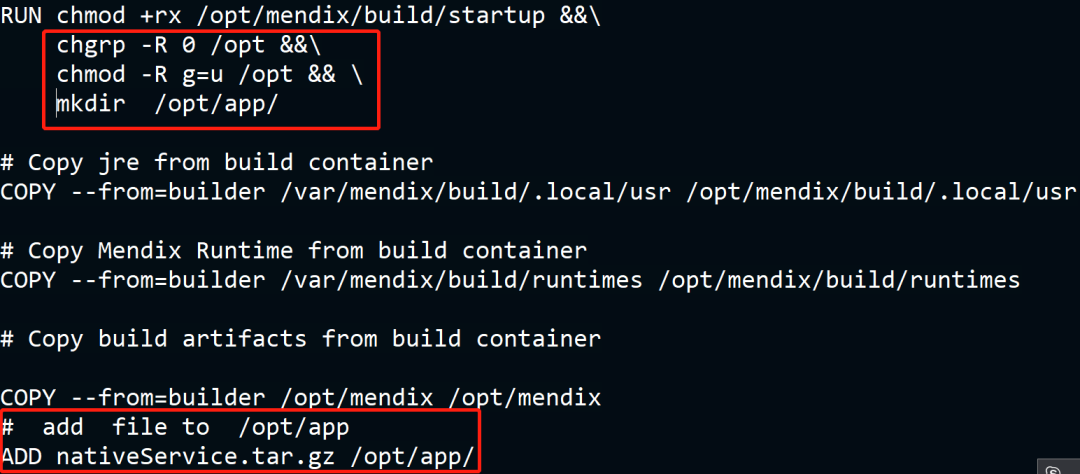 ilink.mpk和native.mpk为Mendix所开发的两个微服务。docker-mendix-buildpack-ilink和docker-mendix-buildpack-native是这两个app镜像构建,容器部署相关的脚本,主要文件包括Dockerfile、Makefile、startup启动文件。