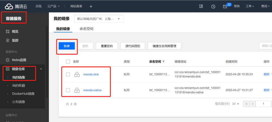 腾讯云的镜像仓库功能存储构建的镜像