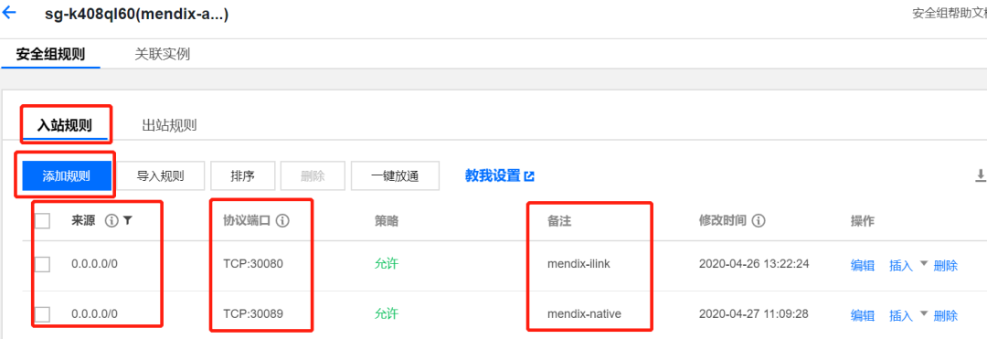 添加相应的安全规则: