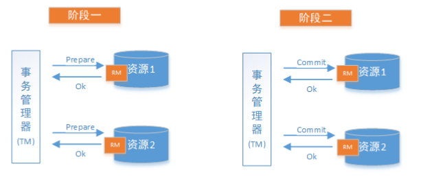 2PC即两阶段提交协议,将整个事务流程分为两个阶段:准备阶段、提交阶段。