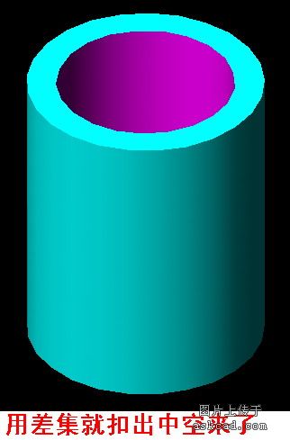 3、比较上面的三种方法大类,前两种最后都是用"差集"命令,通过大的扣出小的,以达到空洞的目的。而实体旋转命令则不有这个命令,直接靠做好截面来旋转。比较一下,我推荐初学朋友可用这个方法。