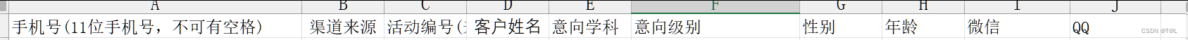 /*excel需转换的表字段 活动Id 渠道来源 性别 意向学科 意向等级 */