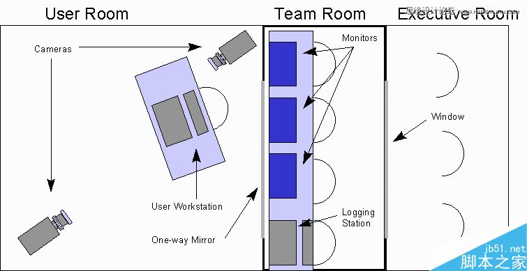 我见过的几个用户测试实验室,基本设置都差不多,就是用户在一间房间里面做测试,房间里面要不就是有摄像头,要么就是有只能单向看到的玻璃,然后其他旁观测试的同事都会在另一间会议室,要么看实时直播,要么就通过玻璃直接观察。这样的目的是为了让用户在尽可能自然的情况下进行测试。要知道,当年我最怕的就是用户告诉我:为了做你们的测试,我昨晚很认真的研究了一下amazon!真是泪崩。