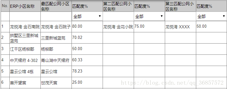 既然要规整,就要有统一的名称规范,最终决定从安居客,租房网等爬出杭州市各小区的标准名称.再用数据库现有数据与之对比.列出最相似的前三个名称,然后泽其一修数据库数据.
