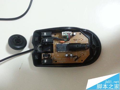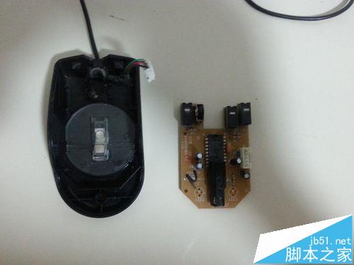 3、拆除鼠标右边的白色usb=连接线,便可以将鼠标的主板拿下,需要小心一下鼠标滚轮的拆卸