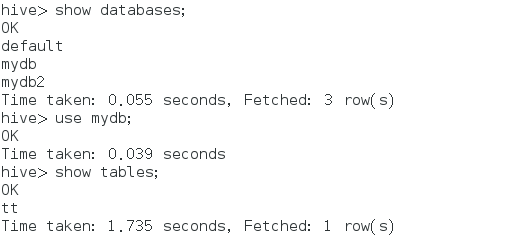 spark.sql("create table mydb.tt(id int,name string , age int)row format delimited fields terminated by ',' lines terminated by 'n' stored as textfile");