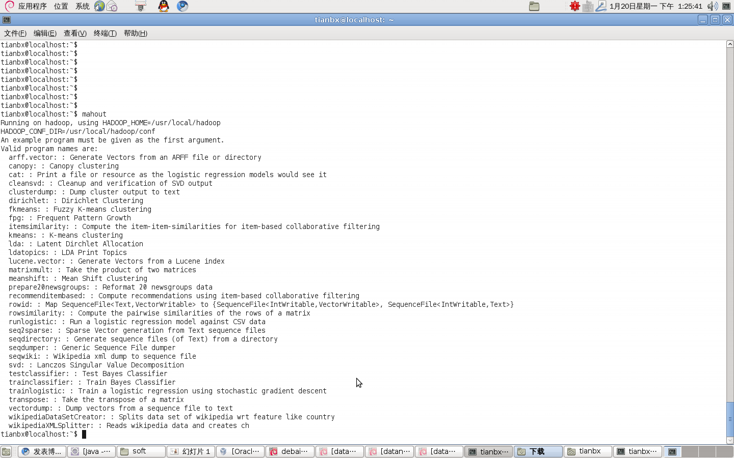 tianbx@localhost :/usr/local/mahout/bin$ ./mahout --help
