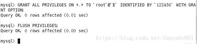 GRANT ALL PRIVILEGES ON *.* TO 'root'@'%' IDENTIFIED BY '123456' WITH GRANT OPTION;