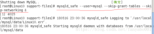 mysqld_safe --user=mysql --skip-grant-tables --skip-networking &