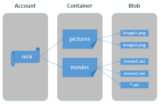 下图描述了 Blob Storage 的基本组织结构:
