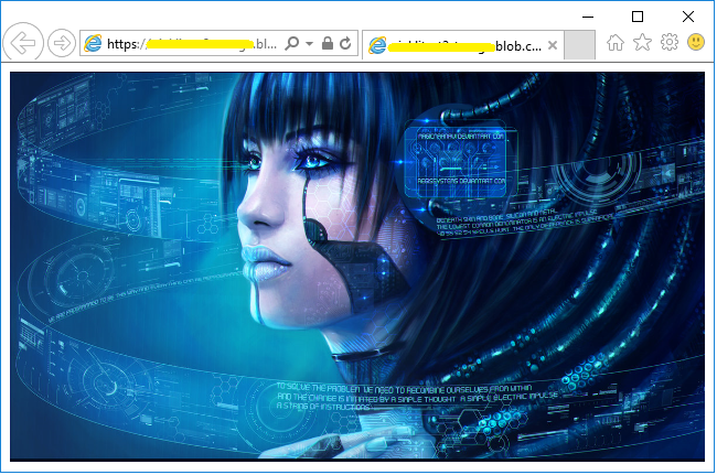 在 Storage Explorer 中选择 mypicture.png,右键,选择 "Copy URL to Clipboard"。把 URL 粘贴到浏览器的地址栏中。
