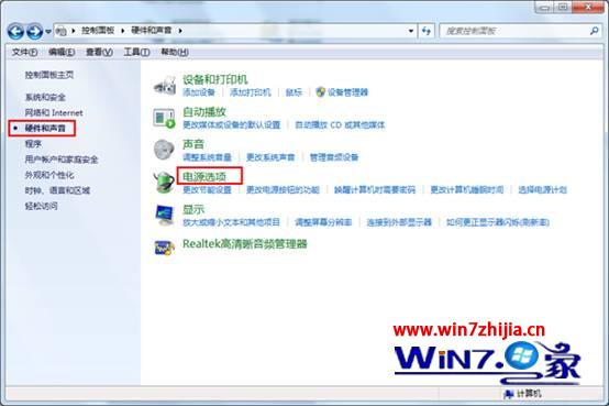 3、接着点击右侧窗口中的“电源选项”