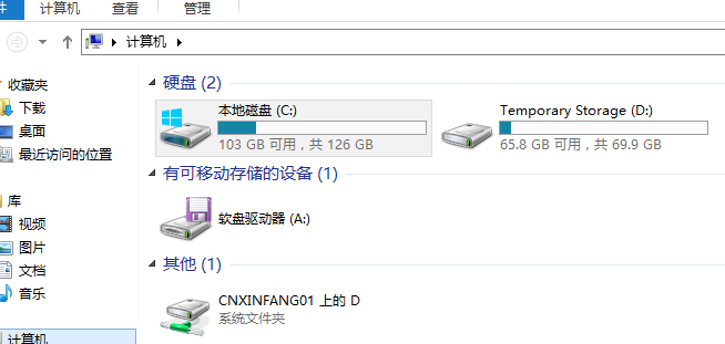 这样登录虚拟机后,就可以在资源管理器里面看到本地磁盘,直接进行文件拷贝。