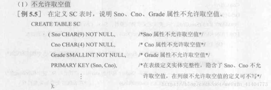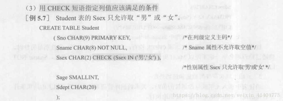 在CREATE TABLE 中定义属性的同时,可以根据应用的要求定义属性的约束条件,即属性值限制.