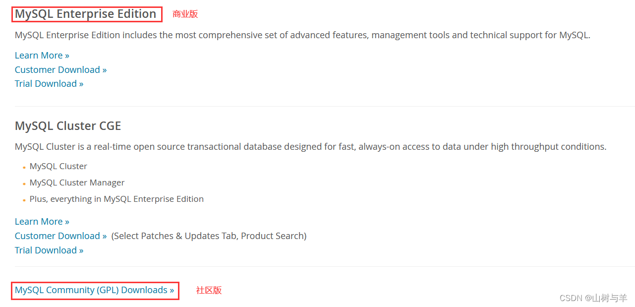 商业版(MySQL Enterprise Edition):收费,可以试用30天,官方提供技术支持