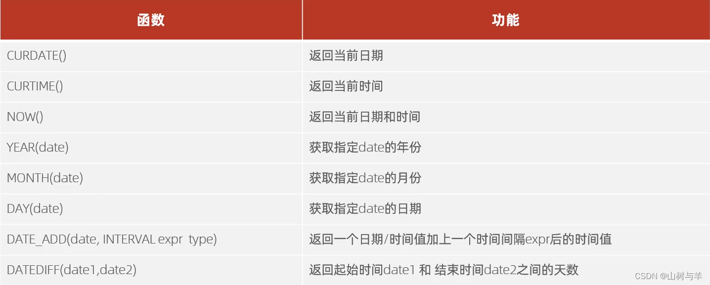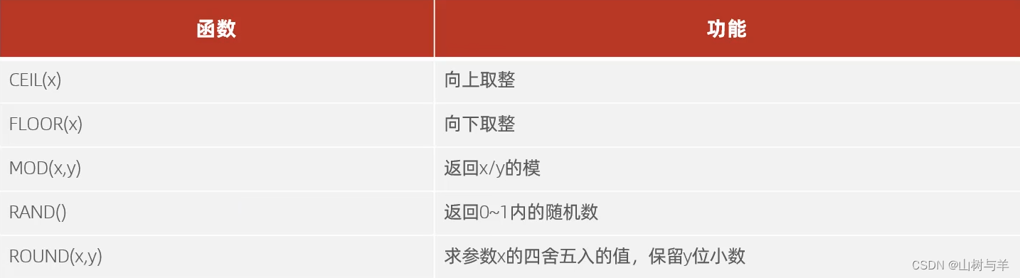函数( MySQL 内置了许多函数,他们有不同的作用)
