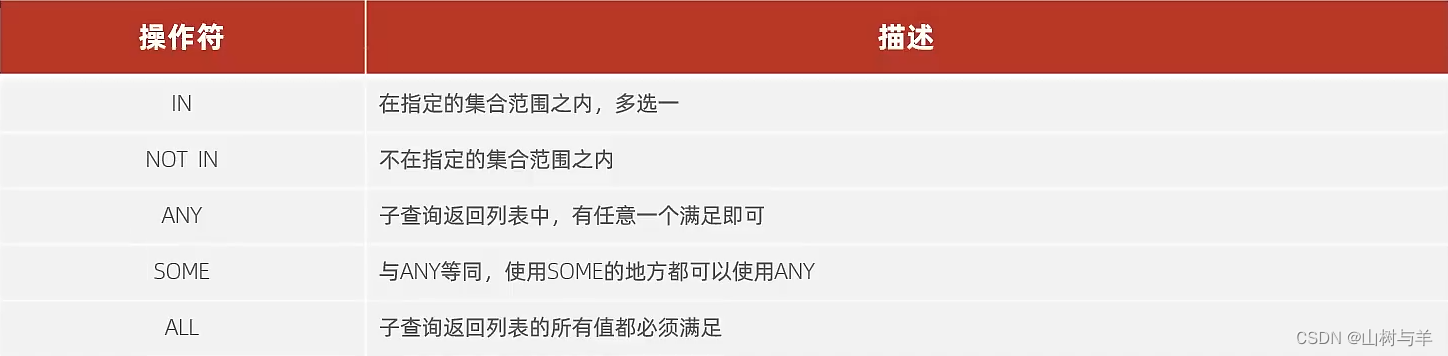 子查询返回的结果是一列(可以是多行),这种子查询称为列子查询