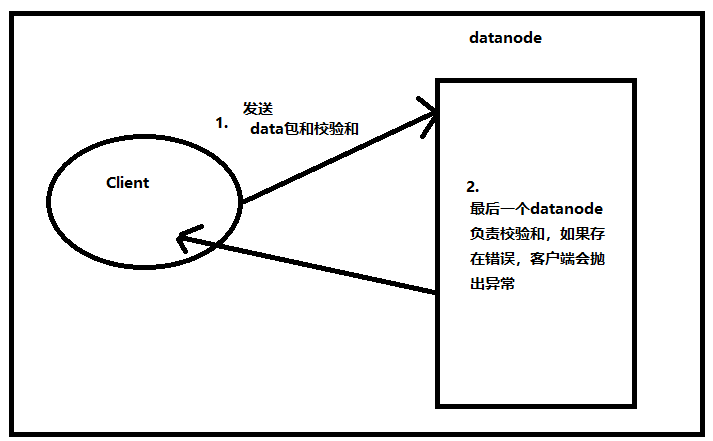 1.上传数据时,客户端会负责将数据和校验和发送给datanode,最后一个datanode负责对数据进行校验,如果存在错误,则客户端会抛出异常: