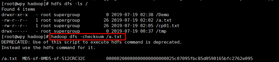 这可用于检测HDFS中两个文件的内容是否相同,hadoop distcp 也具有类似功能