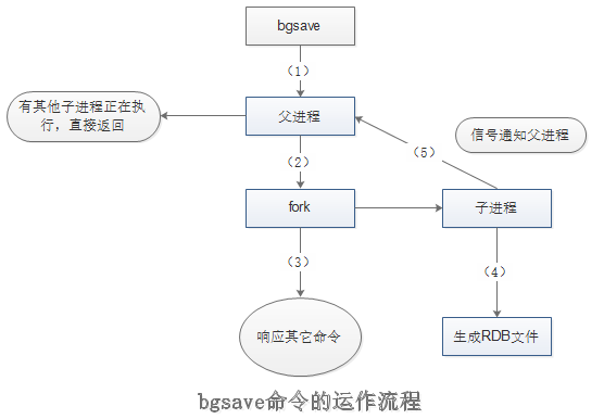 (1)执行bgsave命令,Redis父进程判断当前是否存在正在执行的子进程,如RDB/AOF子进程,如果存在bgsave命令直接返回。