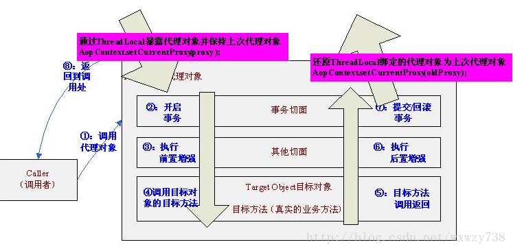 4.3、在退出代理对象之前要重新将ThreadLocal绑定的代理对象设置为上一次的代理对象,即AopContext.serCurrentProxy(oldProxy)。