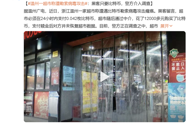前几天,浙江宁波一个超市就中了勒索病毒,被勒索0.042比特币,价值12000元,超市管理员缴纳赎金后,数据也没有得到解密,只能寻求第三方恢复数据库。