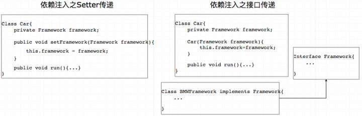 这里我们是采用的构造函数传入的方式进行的依赖注入。其实还有另外两种方法:Setter传递和接口传递。这里就不多讲了,核心思路都是一样的,都是为了实现控制反转。