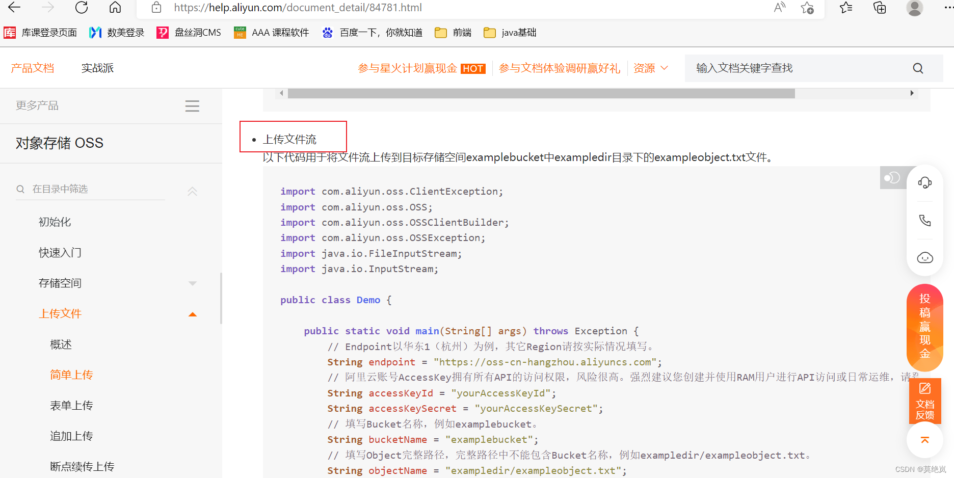 但是实际开发我们应该通过java代码往bucket中上传文件。