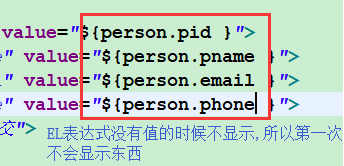 通过EL表达式获取到返回的信息,优点是当没有值返回的时候是空,被引号引起来就是空字符串,所以不会显示null