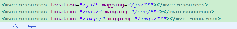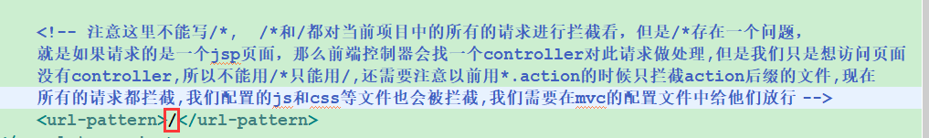 /* 和 / 都对当前项目中的所有的请求进行拦截,但是 /* 存在一个问题,就是如果请求的是一个jsp页面,那么前端控制器会找一个controller对此请求做处理,但是我们只是想访问页面没有controller,所以不能用/*只能用/,还需要注意以前用*.action的时候只拦截action后缀的文件,现在是所有的请求都被拦截,我们配置的js和css等文件也会被拦截,我们需要在mvc的配置文件中给他们放行,放行方式有两种,详见下面: