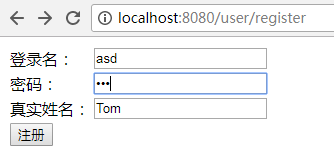 最后,部署这个web应用,在浏览器中输入如下URL:http://localhost:8080/user/register。自行测试即可。效果将于文章开头提及的效果一样。