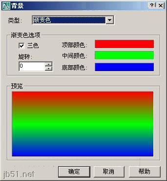 步骤四、然后弹出了“背景”窗口。,将类型选择“渐变色”然后有勾选了三色,将三色去掉。如图所示: