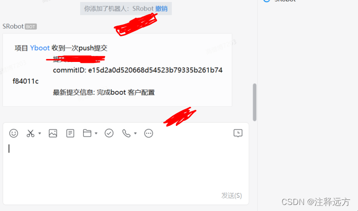 项目群关联gitLab实现工程进度的透明化,让系统、测试、项目经理实时得知项目进度,这很重要。只需要在企业微信群中添加一个机器人即可。