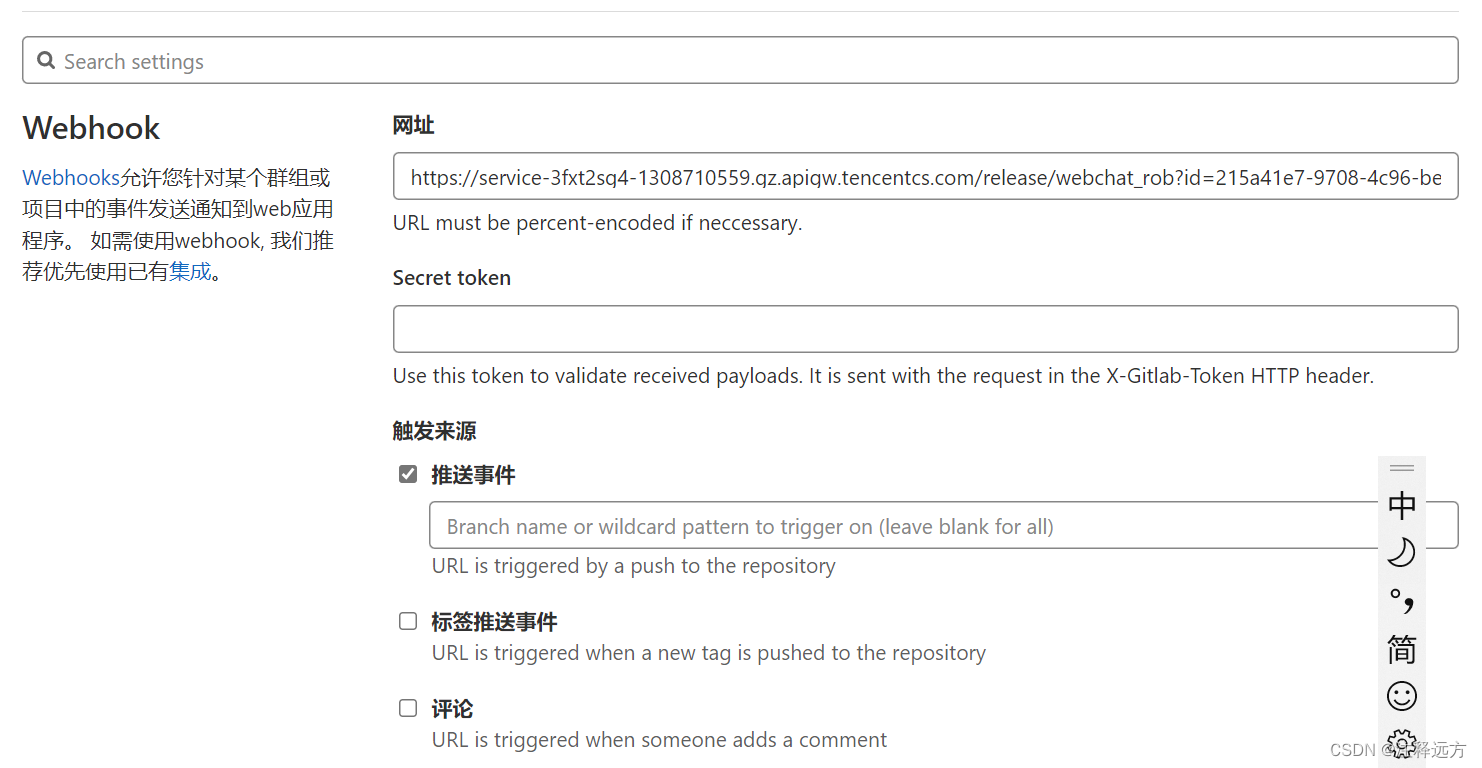 以上就是内向手机最近收集整理的关于gitLab关联企业微信项目群实现事件通知的全部内容,更多相关gitLab关联企业微信项目群实现事件通知内容请搜索靠谱客的其他文章。