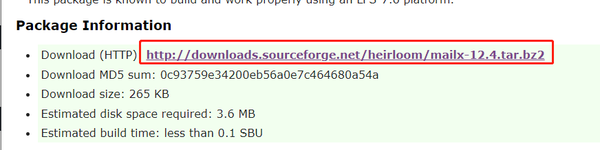下载地址:http://www.linuxfromscratch.org/blfs/view/7.6/basicnet/mailx.html