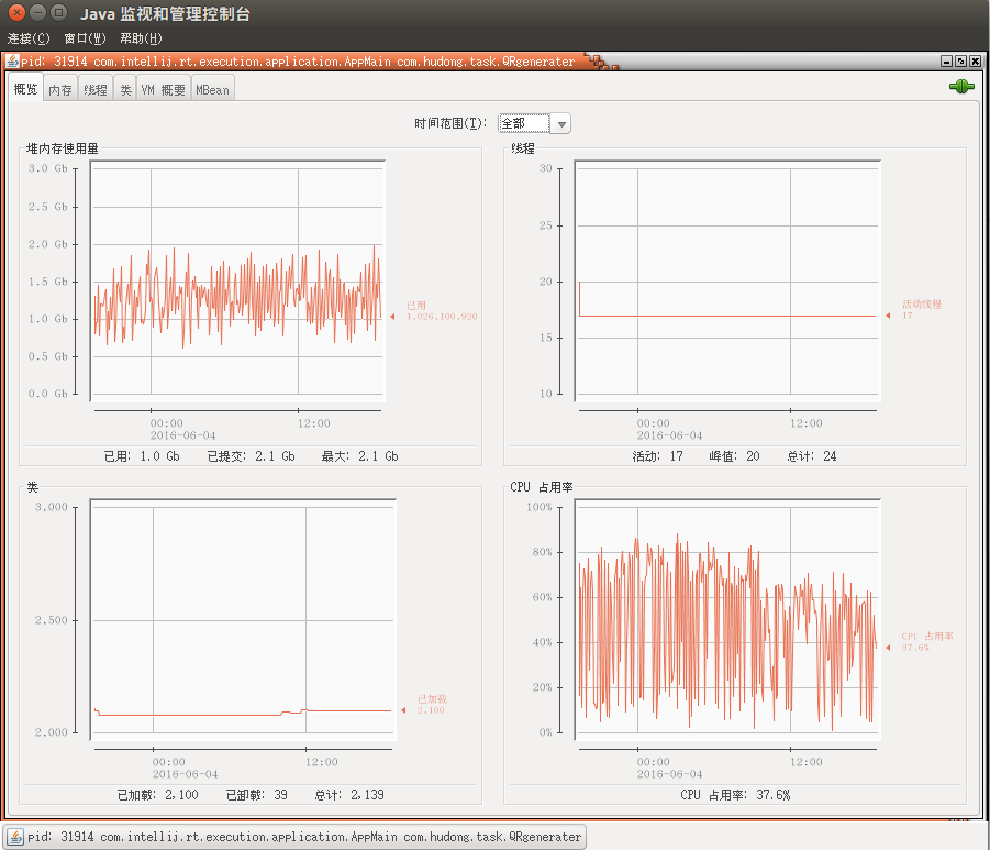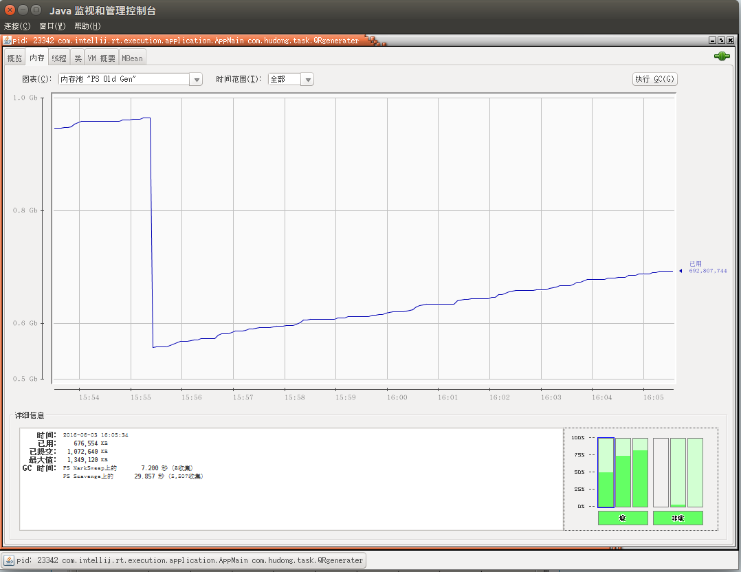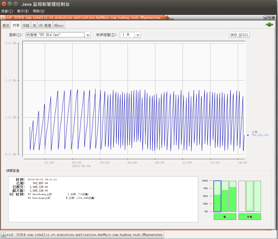 上面两张图片是jconsole监控界面,程序已运行超过12小时。