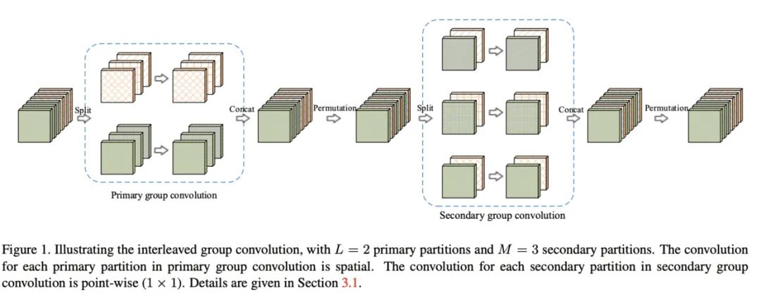 图1b对输出的维度进行重新分配,首先将每个组的输出分成多个子组,然后将每个子组输入到不同的组中,能够很好地保留组间的信息流。