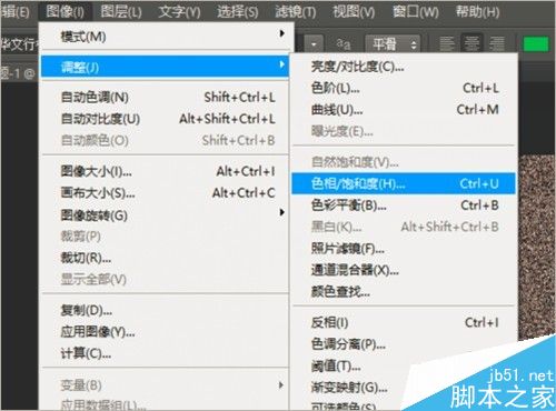 点击“图像”、“调整”,找到“色相/饱和度”打开,调整色相、饱和度等给灰白色的背景图赋予不一样的颜色。