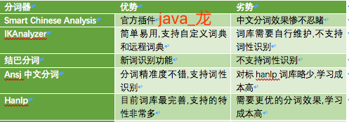 个人对以上分词器进行了一个粗略对比,如下图: