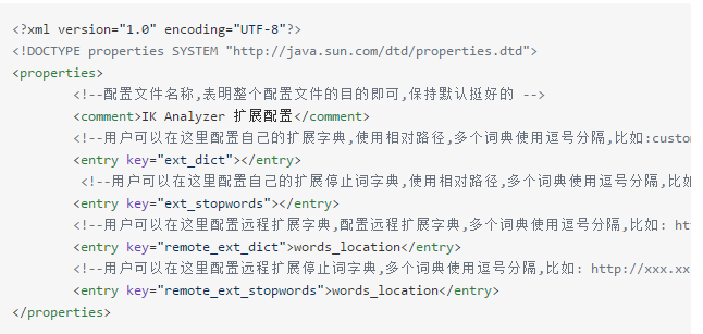 ik安装完毕后配置文件在 {ES_HOME}/config目录下, 本例目录是 /opt/apps/elasticsearch-6.4.0/config/analysis-ik/IKAnalyzer.cfg.xml