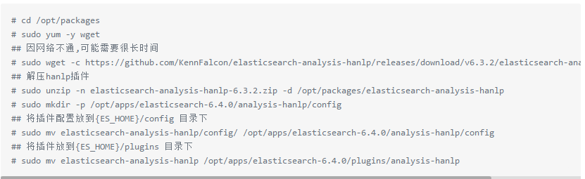 hanlp的elasticsearch插件众多,这里选用了这个,这个插件支持的分词模式要多一些,截止现在此插件最新支持6.3.2,由于插件中包含很大的词典文件,建议此插件采用离线安装