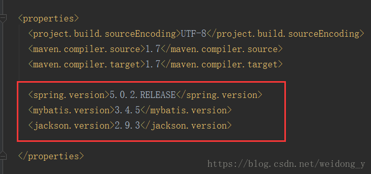 在 properties 标签里面配置上版本号。(版本号根据需求自行修改)