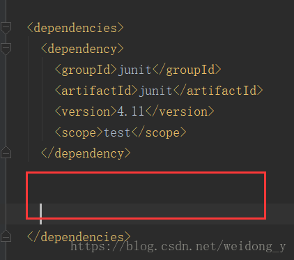 接着将下面代码直接复制粘贴到 dependencies 标签里面的红框位置,注意位置不要