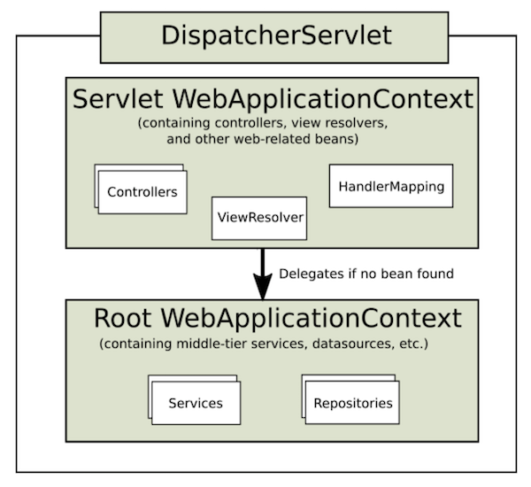 Sping MVC 是在 Spring 之上的框架,用于开发 Web 程序。 Spring MVC 是建立在 Servlet API 之上的 Web 框架,包含在 Spring Framework 中。MVC 是指 模型,视图,控制器的意思,Spring MVC 实现了这种思想。 Spring MVC 分离了控制器、模型对象、过滤器以及处理程序对象的角色,这种分离让它们更容易进行定制。 Spring MVC 不依赖 JSP,可以使用其他模板引擎(JSP,thymeleaf等)。RESTful API 返回的 JSON 格式可以理解为 json View,也是 MVC。 Spring MVC 与许多其他 Web 框架一样,是围绕前端控制器模式( front controller )设计的,其中DispatcherServlet为请求处理提供统一入口,而实际工作由委托组件处理。 一个HTTP请求经过 Spring MVC 需要经历的过程如下: 刚刚说了 一个请求所要经历的过程,提到了几个组件,下面我们通过搭建基础版的项目进一步了解。 传统的web项目需要一个web.xml进行配置,包括 Servlet的配置映射,请求映射,视图解析,异常处理,委托组件等。DispatcherServlet 需要知道这些配置。 我们这里不这么做,而由 java 代码配置 DispatcherServlet 。 通过继承 AbstractAnnotationConfigDispatcherServletInitializer 来实现,当它部署在 sevlet 3.0的容器中时,容器会自动发现它并应用配置,示例: 上面的代码中配置说明如下: 通常在一个 web 应用中有这么两个上下文: 关系如下: 我这里 RootConfig 是空的。 ServletConfig 类中配置一个 jsp 视图解析器。 写一个简单的 Controller welcome.jsp 文件代码: 使用 Spring 结合 Spring MVC 的一个精简版的项目就搭建好了。 支持下述参数: 示例: 使用 @RequestParam 读取查询字符串中或表单数据的参数值 使用 @PathVariable 注解读取 青汽路径的参数。 Spring Framework 提供对 Java Bean Validation API 的支持。 示例: 更多请参考:https://beanvalidation.org/ 而类似 JSP 开发的方式已是古老的方法。较新一点的是 Thymeleaf 框架。当前(本文写作时间2021-07-06)比较流行的开发方式是前后端分离的技术,使用 ReactJS,VUE 单独开发项目。本文不再多介绍。 @RequestMapping 自定义 servlet 和 filter Multipart 解析器和文件上传 接收上传文件 异常处理 @ResponseStatus 注解的自定义异常,将自动映射到 HTTP 的状态码: 使用 @ExceptionHandler 注解捕获异常: @ExceptionHandler 注解 结合“ 控制器通知 ” 可以捕获所有 控制器的异常。 控制器通知( controller advise ) 是指 被标注了@ControllerAdvice 注解的类。这个类可以配合以下的注解使用: 我的代码示例见:https://github.com/vir56k/java_demo/tree/master/spring_mvc_demo_2 https://docs.spring.io/spring-framework/docs/current/reference/html/web.html http://websystique.com/springmvc/spring-4-mvc-helloworld-tutorial-annotation-javaconfig-full-example/1. 背景