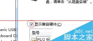 5、将‘显示兼容硬件’的勾去掉,选择一个不兼容的驱动安装