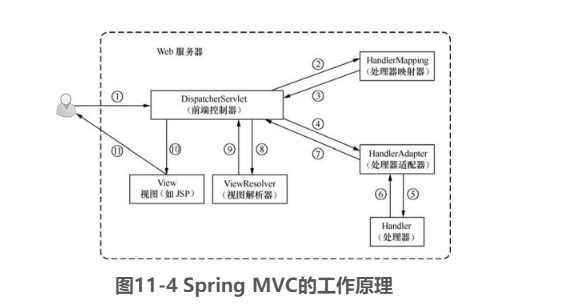 按照图11-4中所标注的序号,Spring MVC程序的完整执行流程如下。