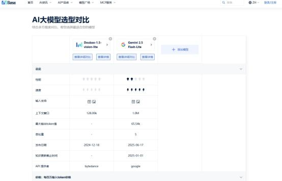 在模型对比页选择Doubao-1.5-vision-lite与Gemini2.5Flash-Lite,一键生成对比