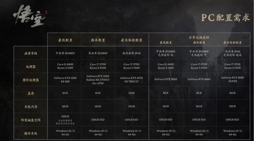 先来看看《黑神话:悟空》的推荐配置: